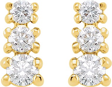 14K Yellow 3/8 CTW Natural Diamond Three-Stone Earrings