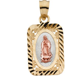 Rhodium-Plated 14K Yellow/Rose Our Lady of Guadalupe Medal