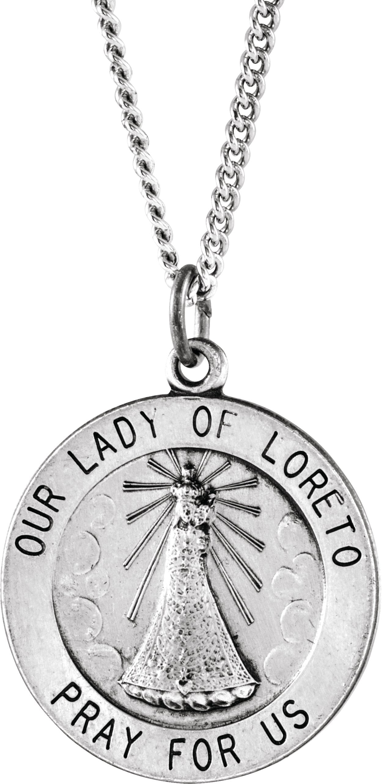 Sterling Silver 18 mm Our Lady of Loreto Medal 18" Necklace