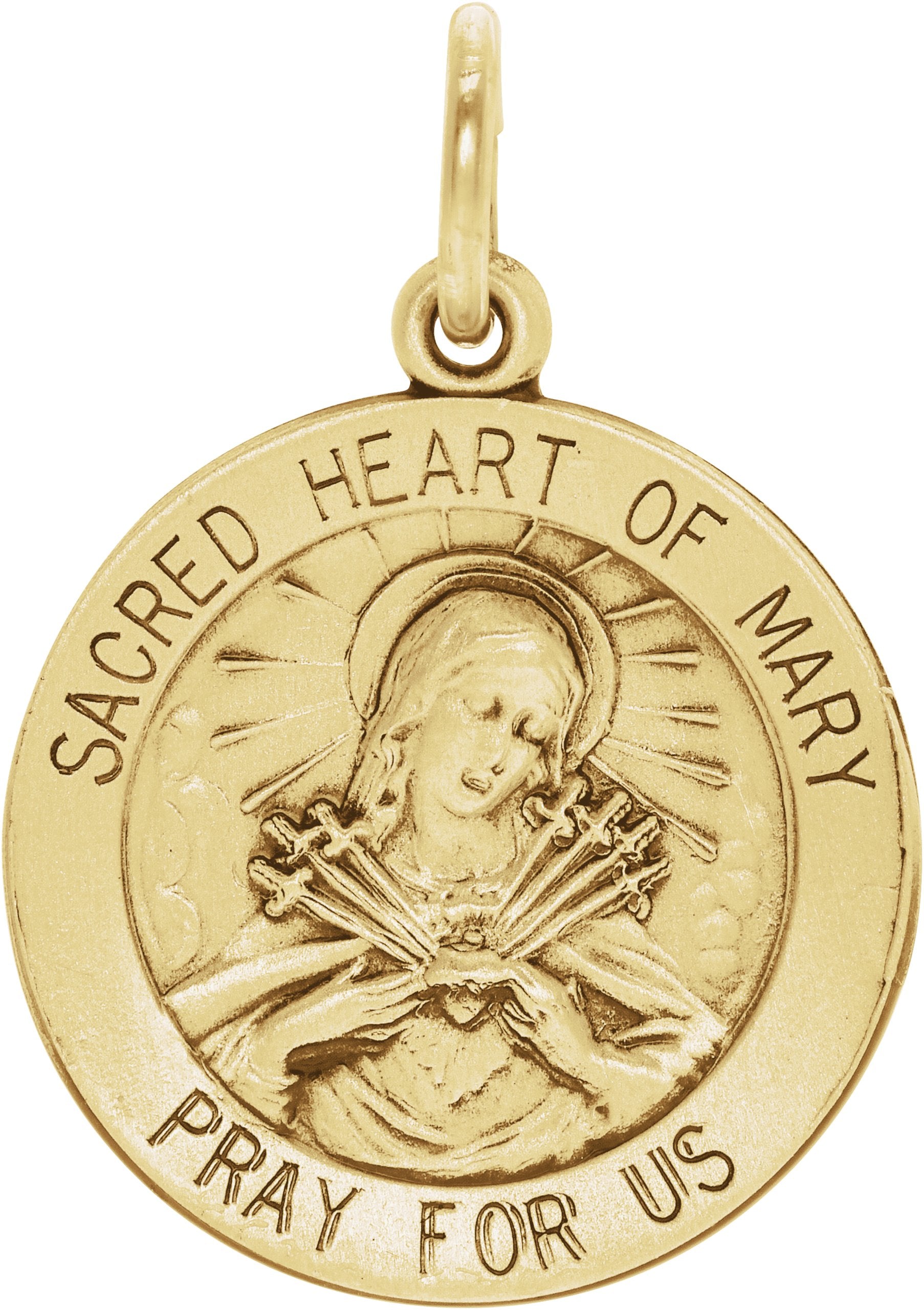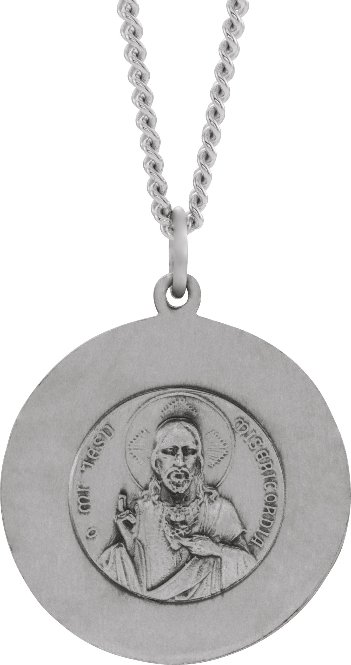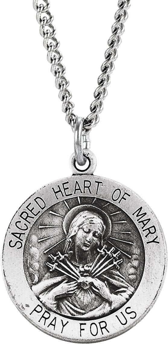 Sterling Silver 18 mm Round Sacred Heart of Mary 18" Necklace