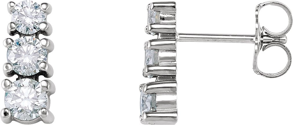 14K White 1/3 CTW Natural Diamond Three-Stone Stud Earrings
