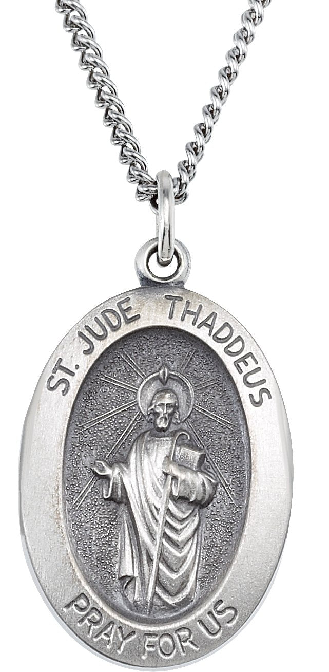 Sterling Silver 18.7x13.5 mm Oval St. Jude Thaddeus 18" Necklace