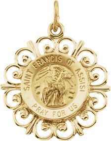 14K Yellow 18 mm St. Francis of Assisi Medal
