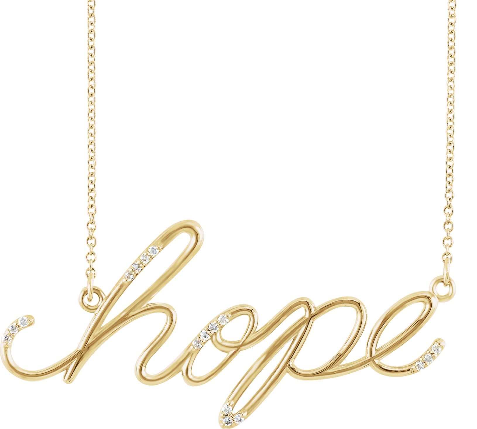 14K Yellow .08 CTW Natural Diamond "Hope" Phrase 16 1/2” Necklace