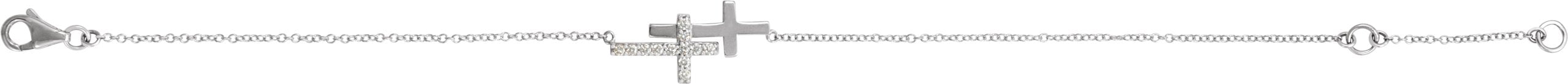 Sterling Silver Imitation Cubic Zirconia Sideways Cross 7-8" Bracelet