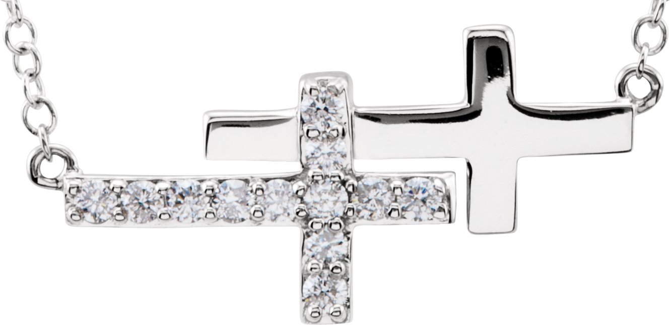 14K White 1/5 CTW Natural Diamond Double Sideways Cross 16-18" Necklace