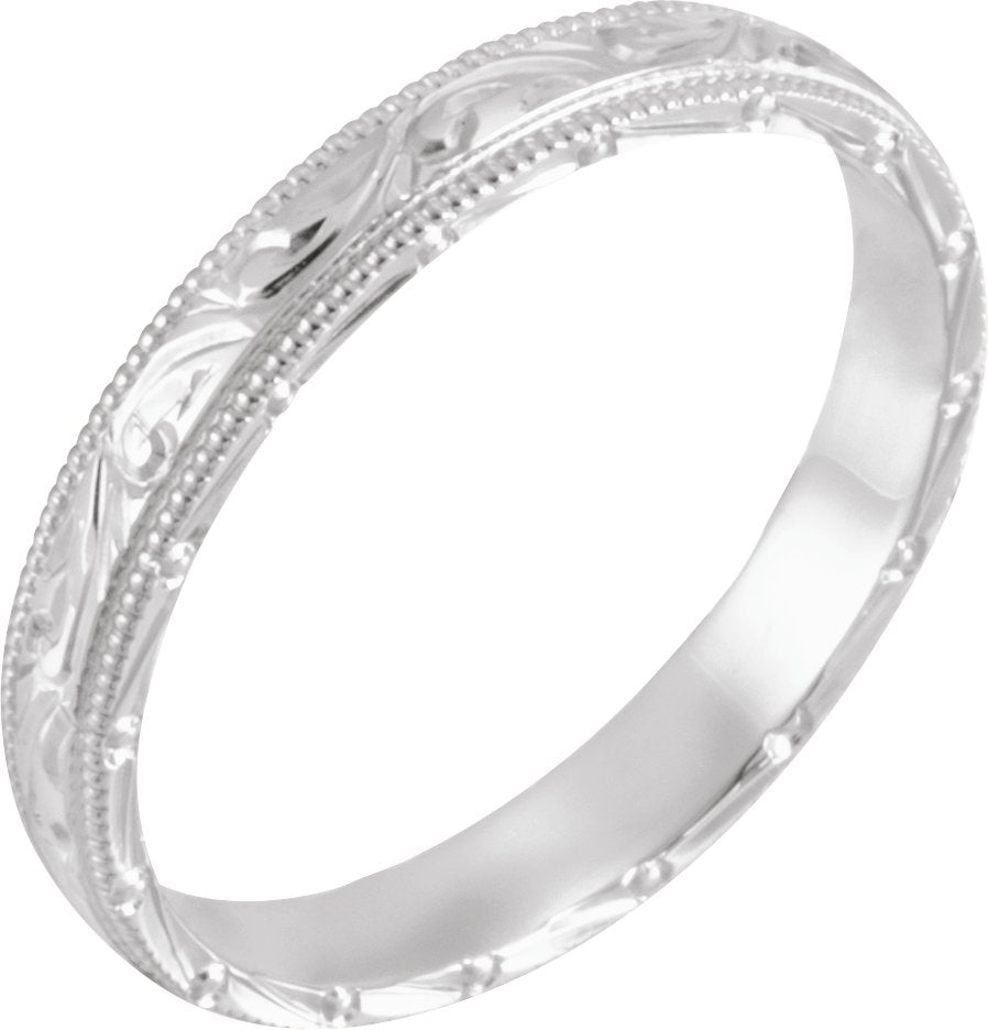 14K White 3 mm Design-Engraved Milgrain Band Size 6