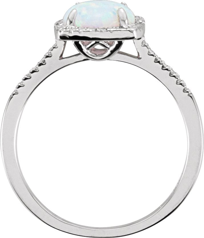 Sterling Silver Lab-Grown White Opal & .01 CTW Natural Diamond Ring