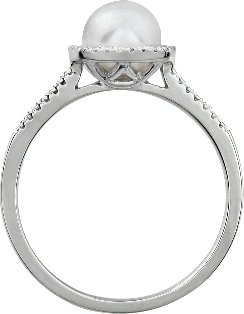 Sterling Silver Cultured White Freshwater Pearl & .01 CTW Natural Diamond Ring