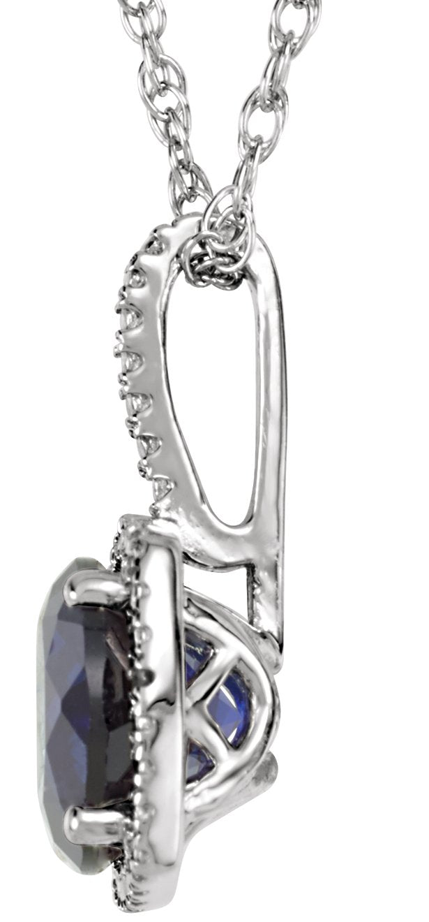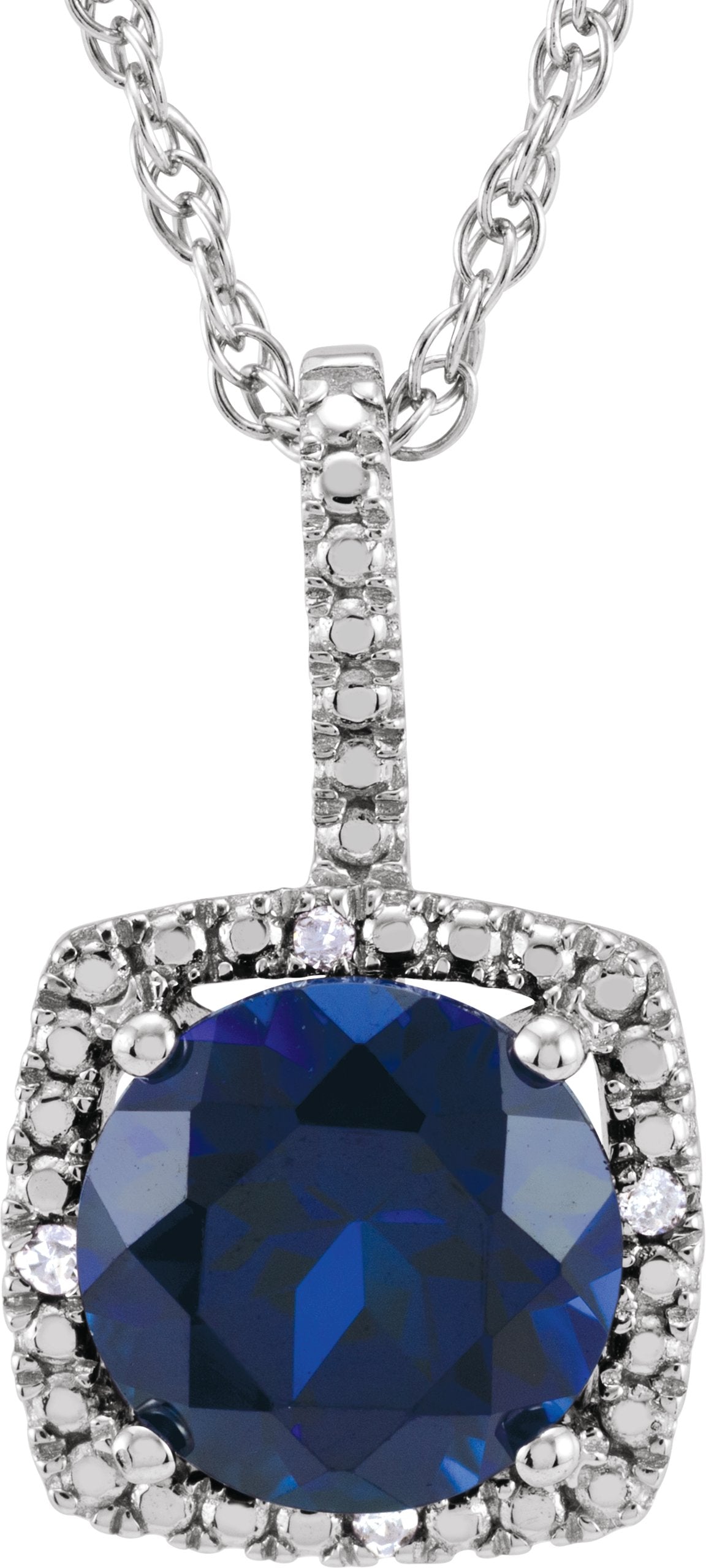 Sterling Silver 7 mm Lab-Grown Sapphire & .015 CTW Natural Diamond 18" Necklace