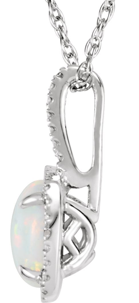 Sterling Silver 7 mm Lab-Grown White Opal & .015 CTW Natural Diamond 18" Necklace
