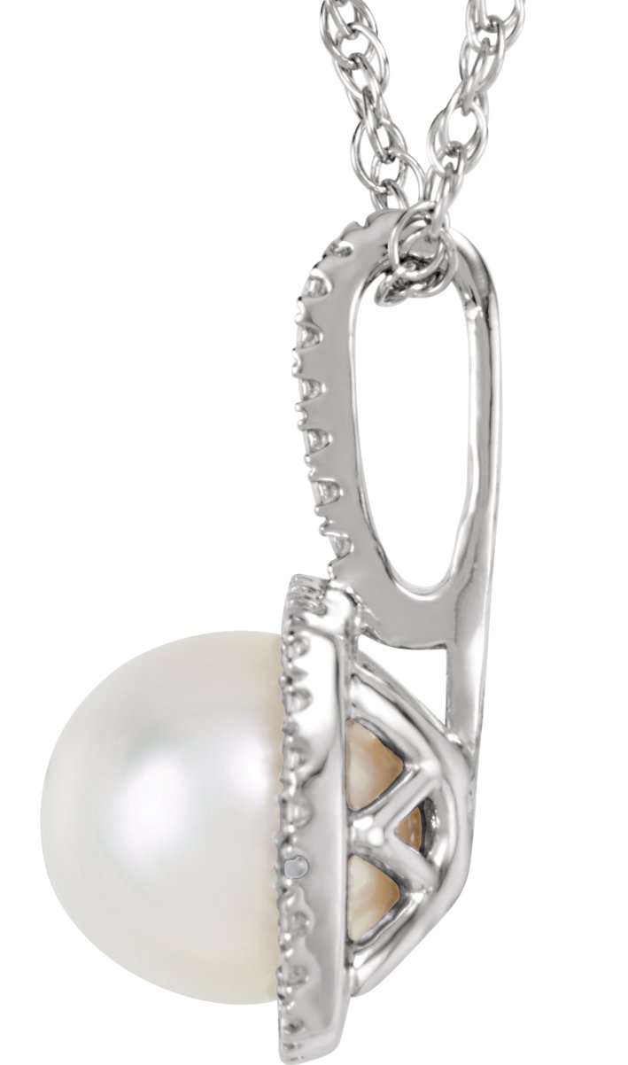 Sterling Silver 6.5-7 mm Cultured White Freshwater Pearl & .015 CTW Natural Diamond 18" Necklace
