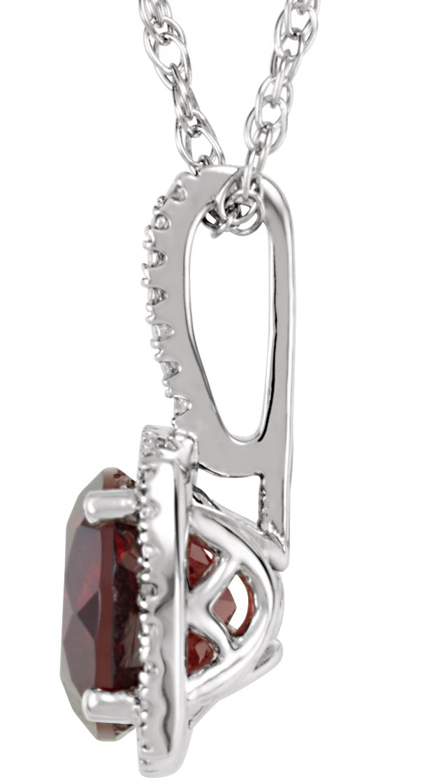 Sterling Silver 7 mm Natural Mozambique Garnet & .015 CTW Natural Diamond 18" Necklace