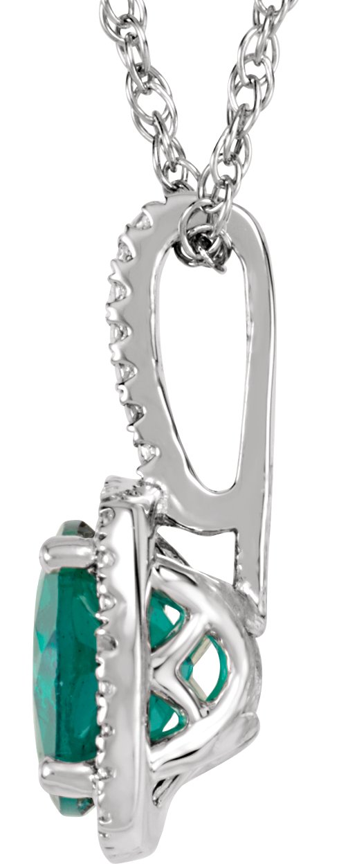 Sterling Silver 7 mm Lab-Grown Emerald & .015 CTW Natural Diamond 18" Necklace