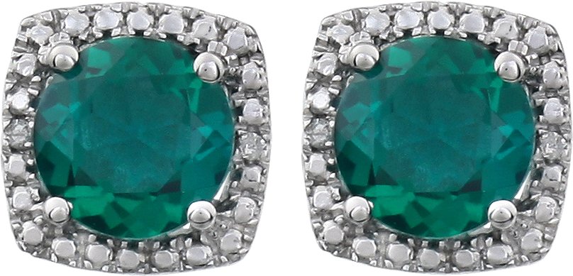 Sterling Silver Lab-Grown Emerald & .015 CTW Natural Diamond Earrings