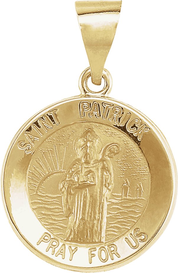 14K Yellow 15 mm Round Hollow St. Patrick Medal