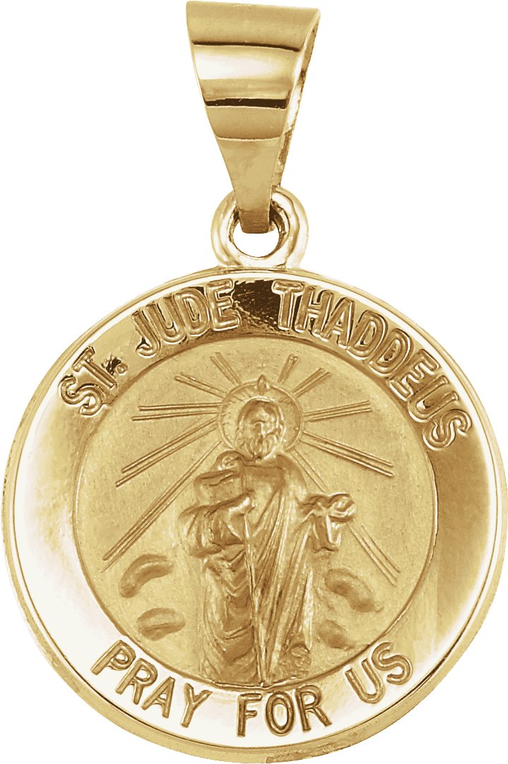 14K Yellow 15 mm Round Hollow St. Jude Medal
