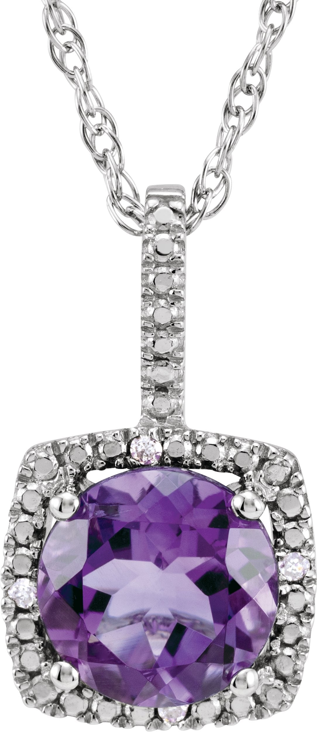 Sterling Silver Natural Amethyst & .015 CTW Natural Diamond 18" Necklace