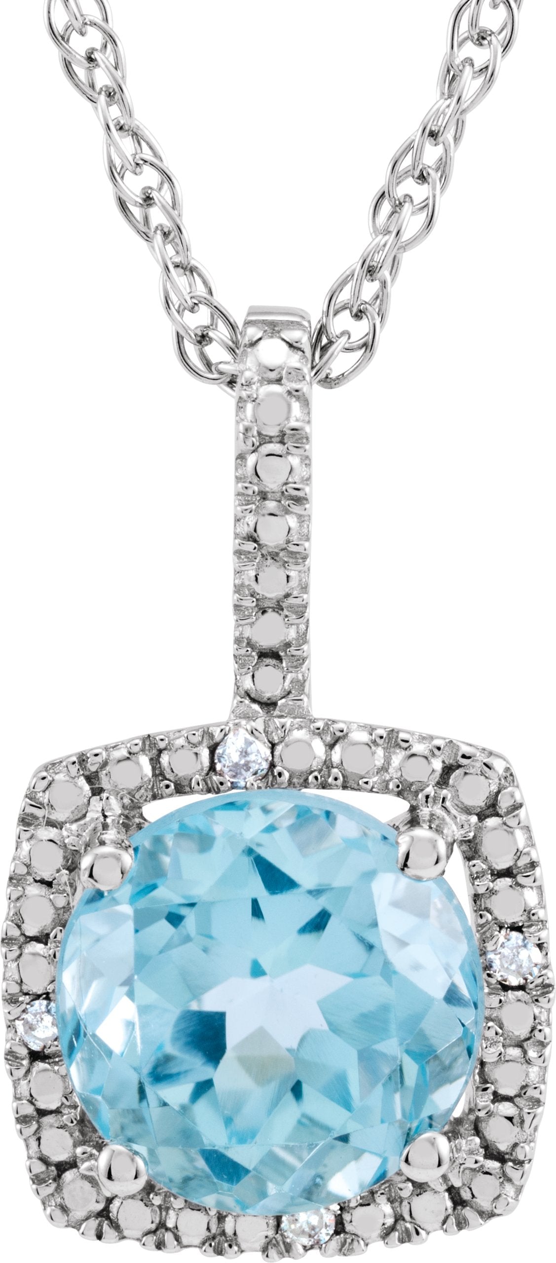 Sterling Silver 7 mm Natural Sky Blue Topaz & .015 CTW Natural Diamond 18" Necklace