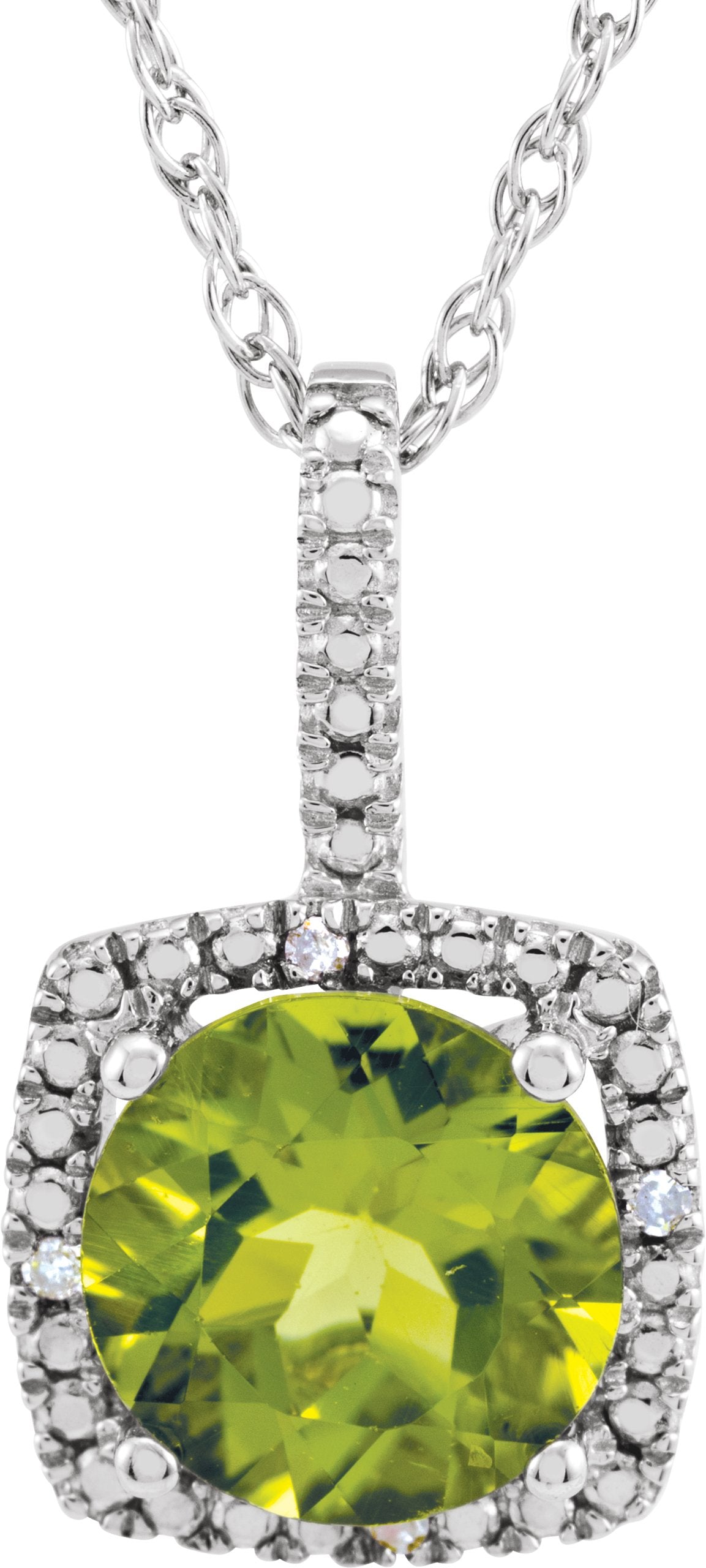 Sterling Silver 7 mm Natural Peridot & .015 CTW Natural Diamond 18" Necklace
