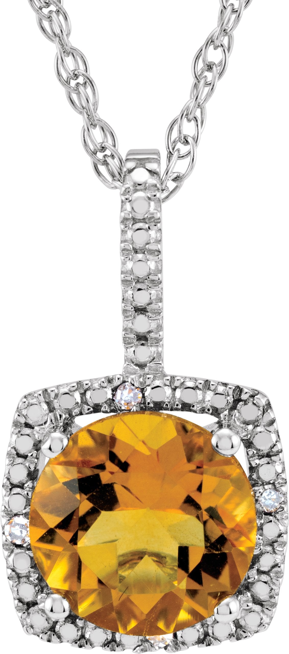 Sterling Silver 7 mm Natural Citrine & .015 CTW Natural Diamond 18" Necklace
