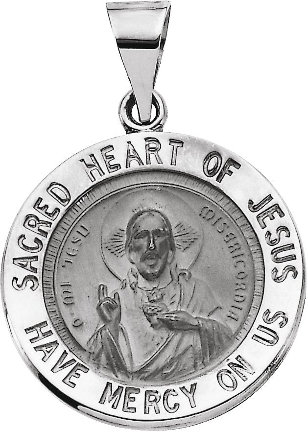 14K Yellow 15 mm Round Hollow Sacred Heart of Jesus Medal