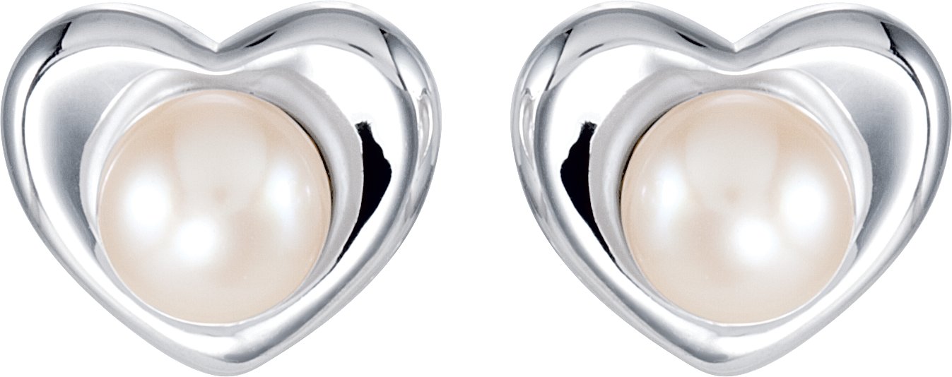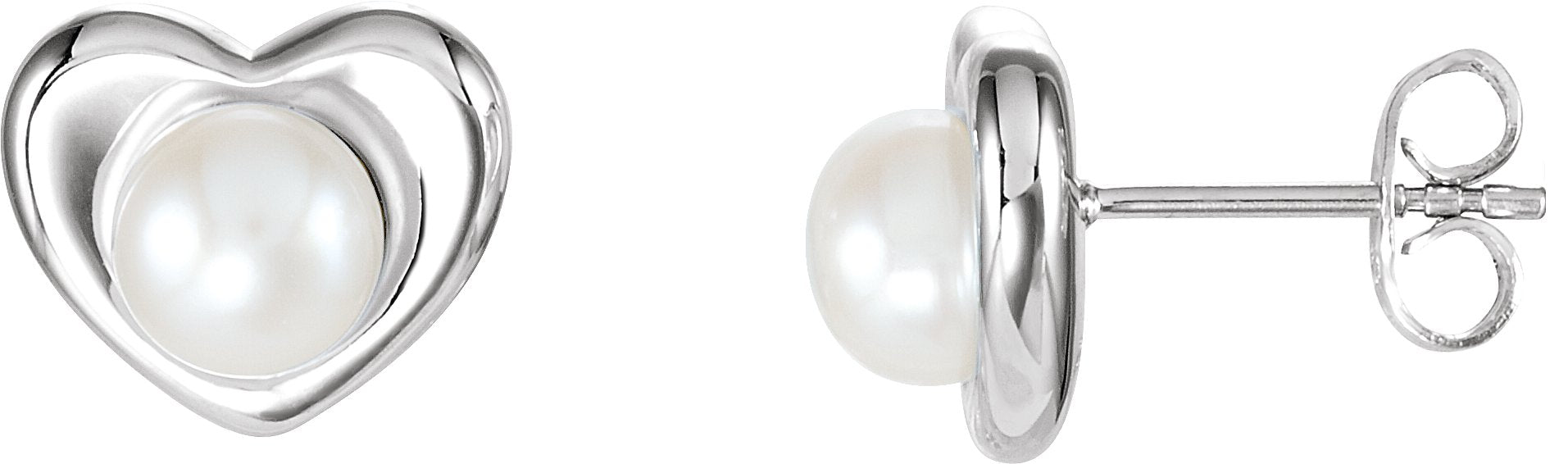 Sterling Silver Cultured White Freshwater Pearl Heart Earrings