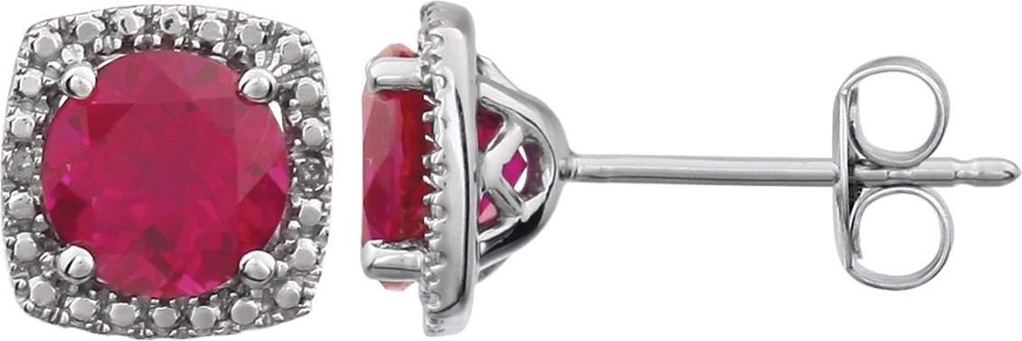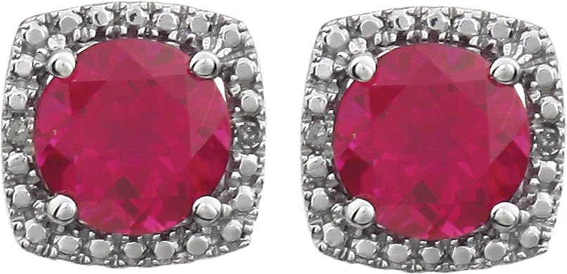Sterling Silver Lab-Grown Ruby & .015 CTW Natural Diamond Earrings