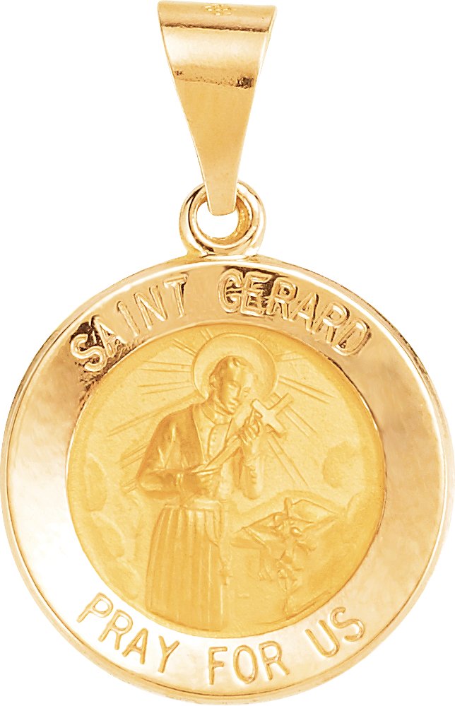 14K Yellow 18 mm Round Hollow St. Gerard Medal