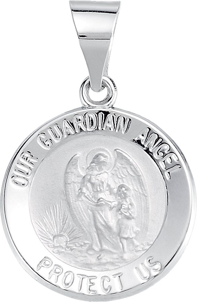 14K White 15 mm Round Hollow Guardian Angel Medal