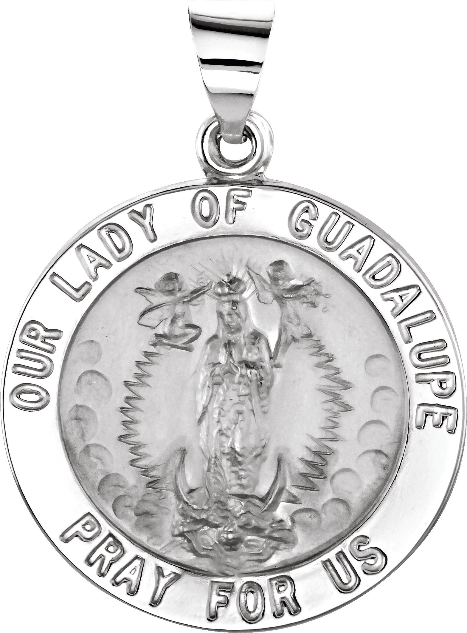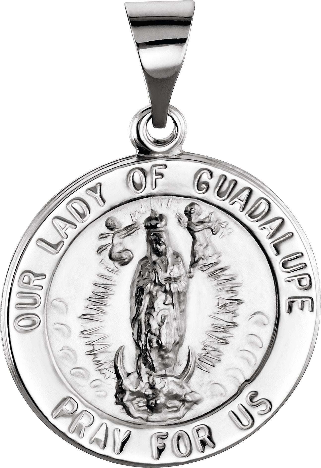 14K White 18 mm Round Hollow Our Lady of Guadalupe Medal