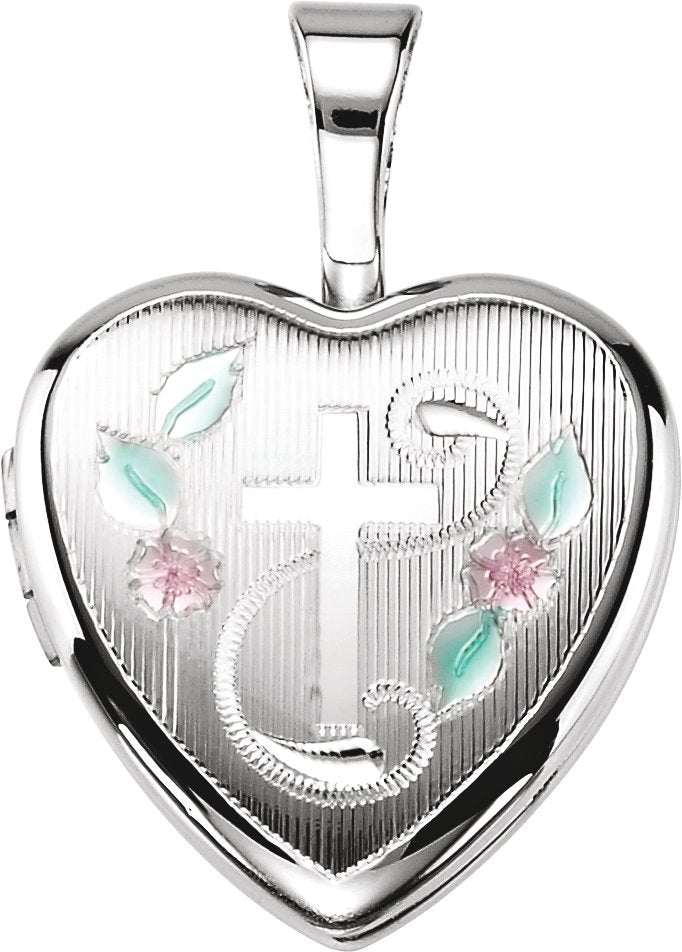 Gold-Plated Sterling Silver Enamel Cross Heart Locket