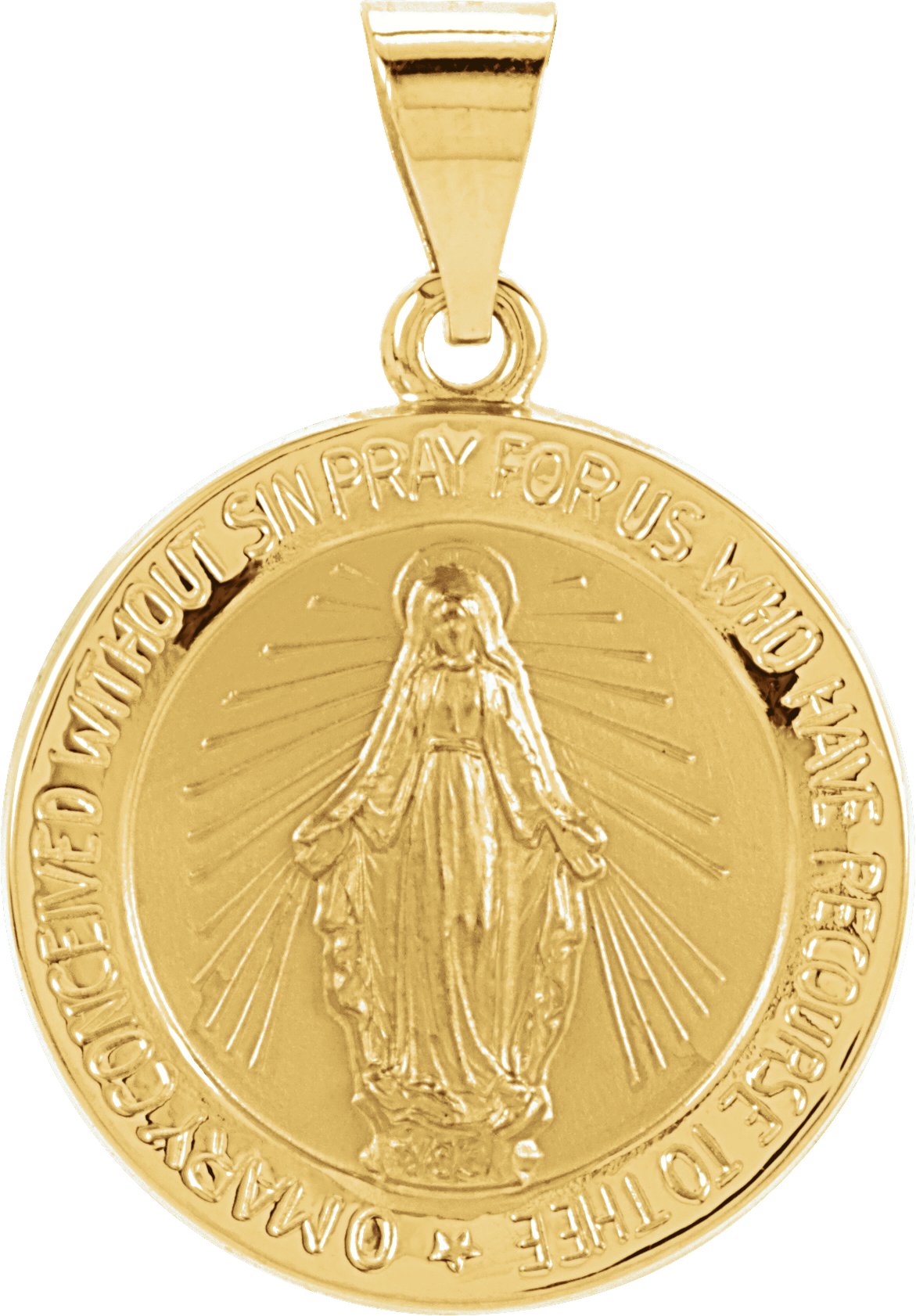 14K Yellow 15 mm Hollow Round Miraculous Medal