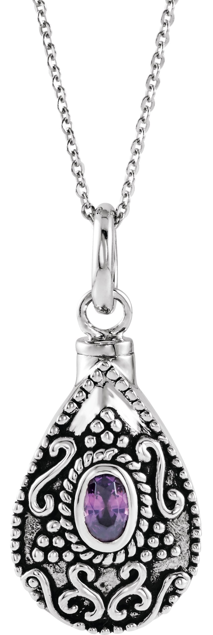 Sterling Silver 6x4 mm Oval February Birthstone Ash Holder 18" Necklace