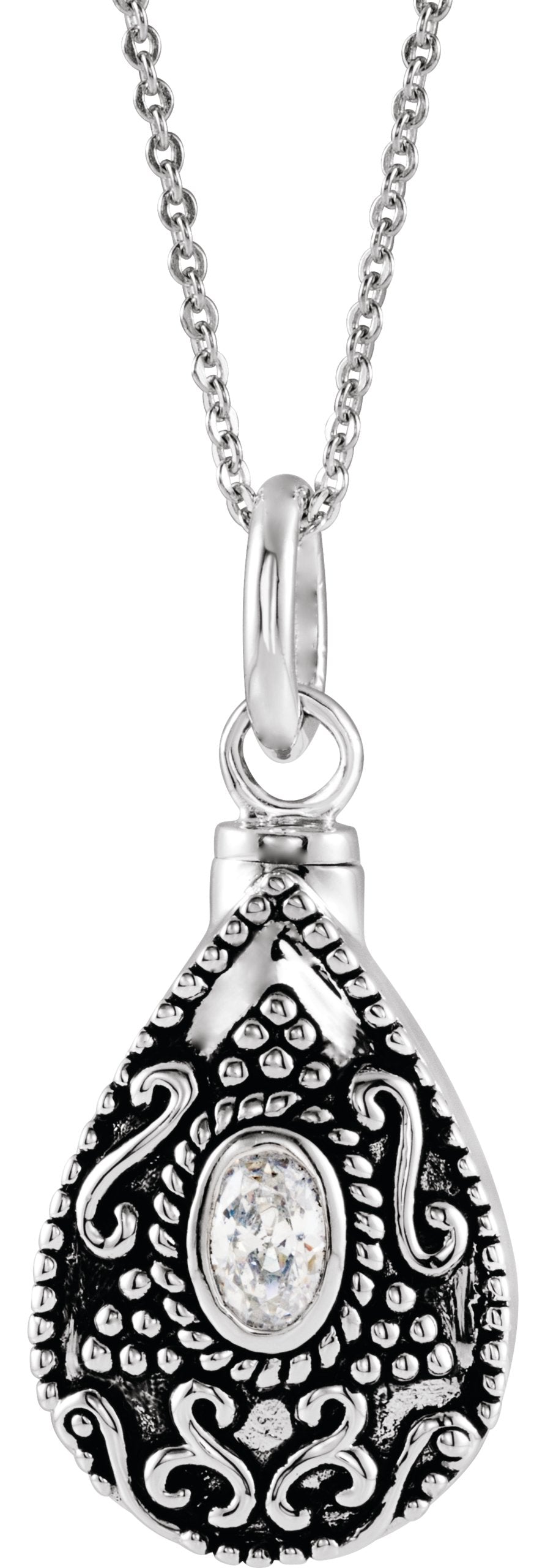Sterling Silver 6x4 mm Oval April Birthstone Ash Holder 18" Necklace