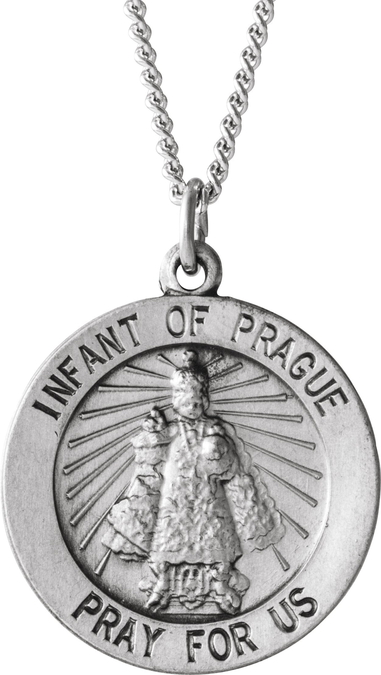 Sterling Silver 18 mm Round Infant of Prague Medal 18" Necklace