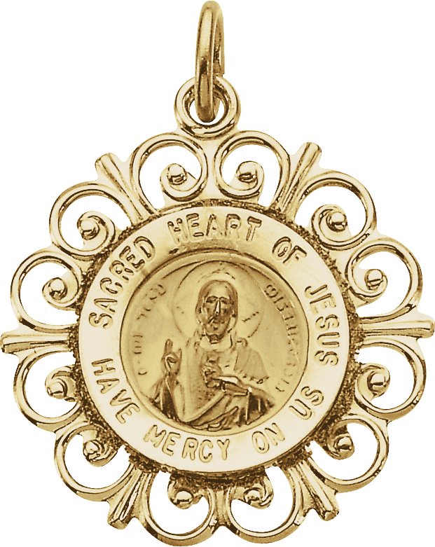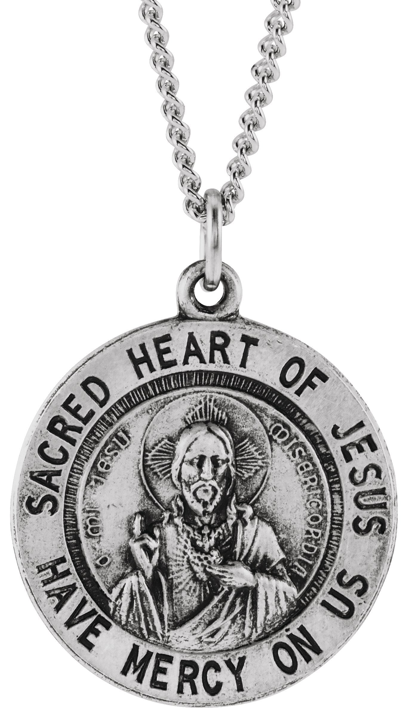 Sterling Silver 18.5 mm Round Sacred Heart of Jesus 18" Necklace