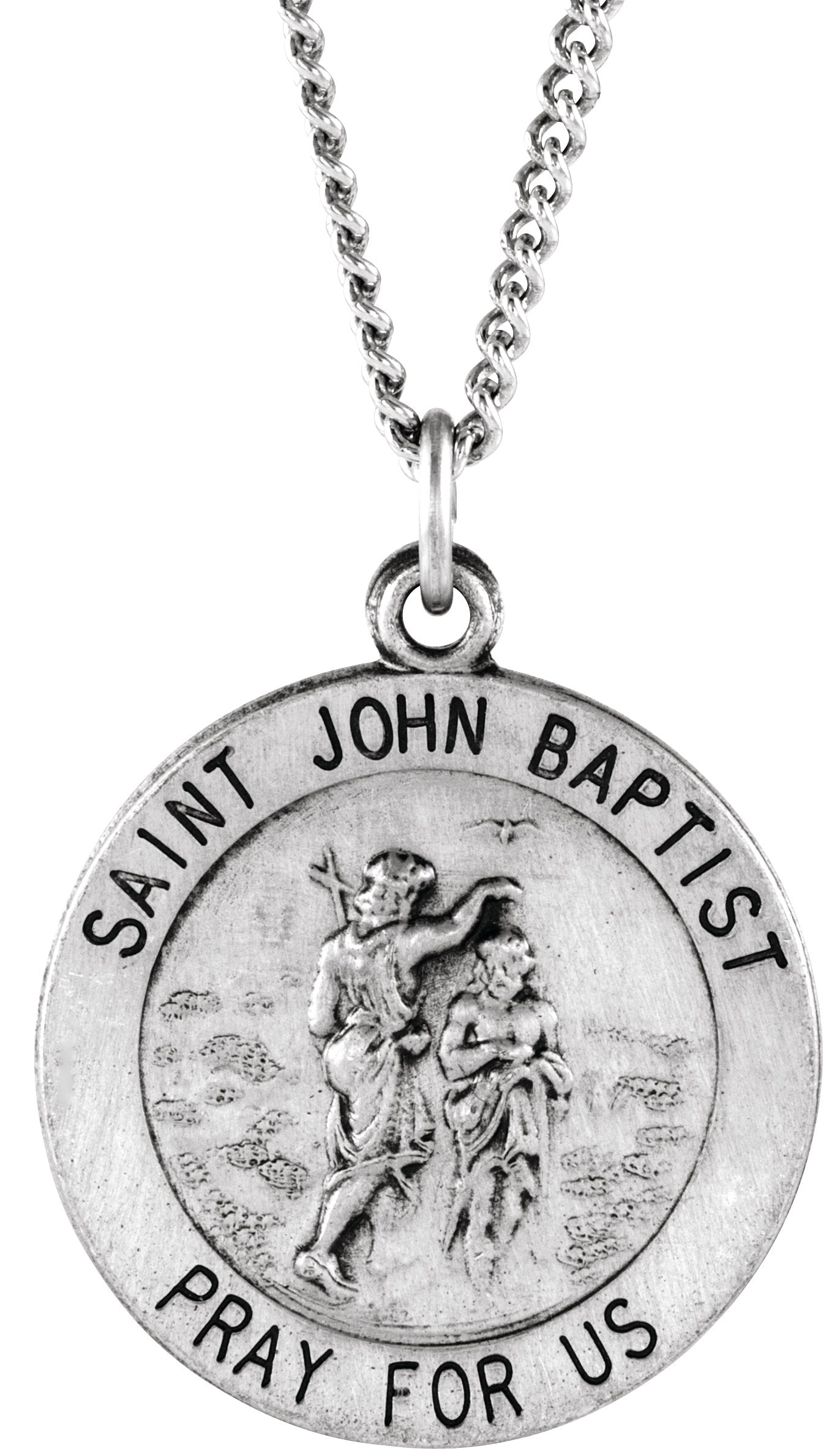 Sterling Silver 18 mm Round St. John the Baptist 18" Necklace