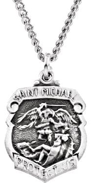 Sterling Silver 16.5x14 mm St. Michael Medal 18" Necklace