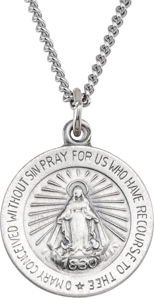 Sterling Silver 15 mm Miraculous Medal 18" Necklace