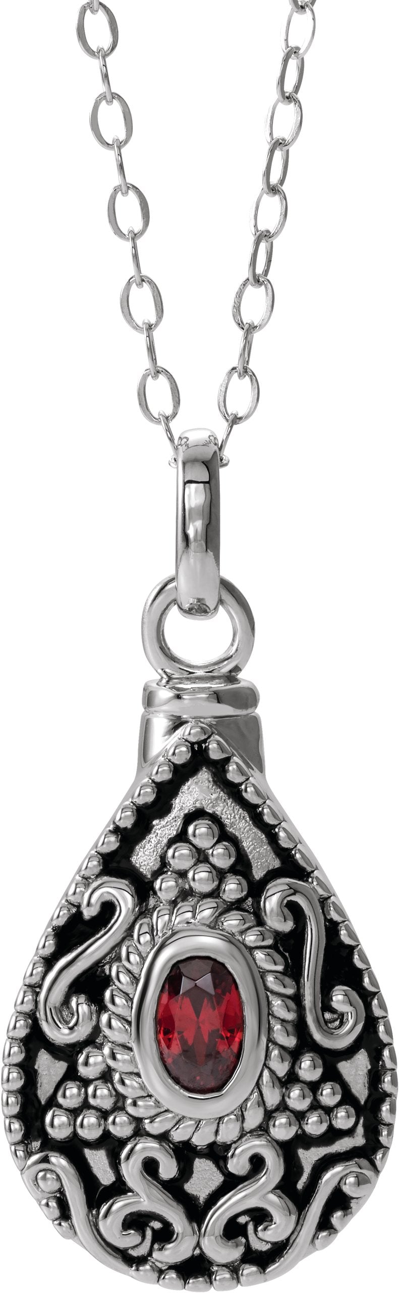 Sterling Silver 6x4 mm Oval January Birthstone Ash Holder 18" Necklace