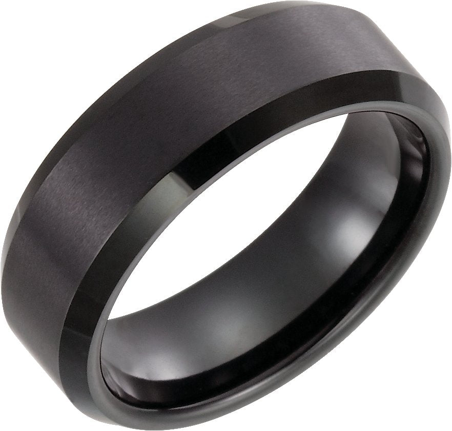 Black Immerse-Plated Tungsten 8 mm Beveled-Edge Inlay Comfort-Fit Band Size 8.5