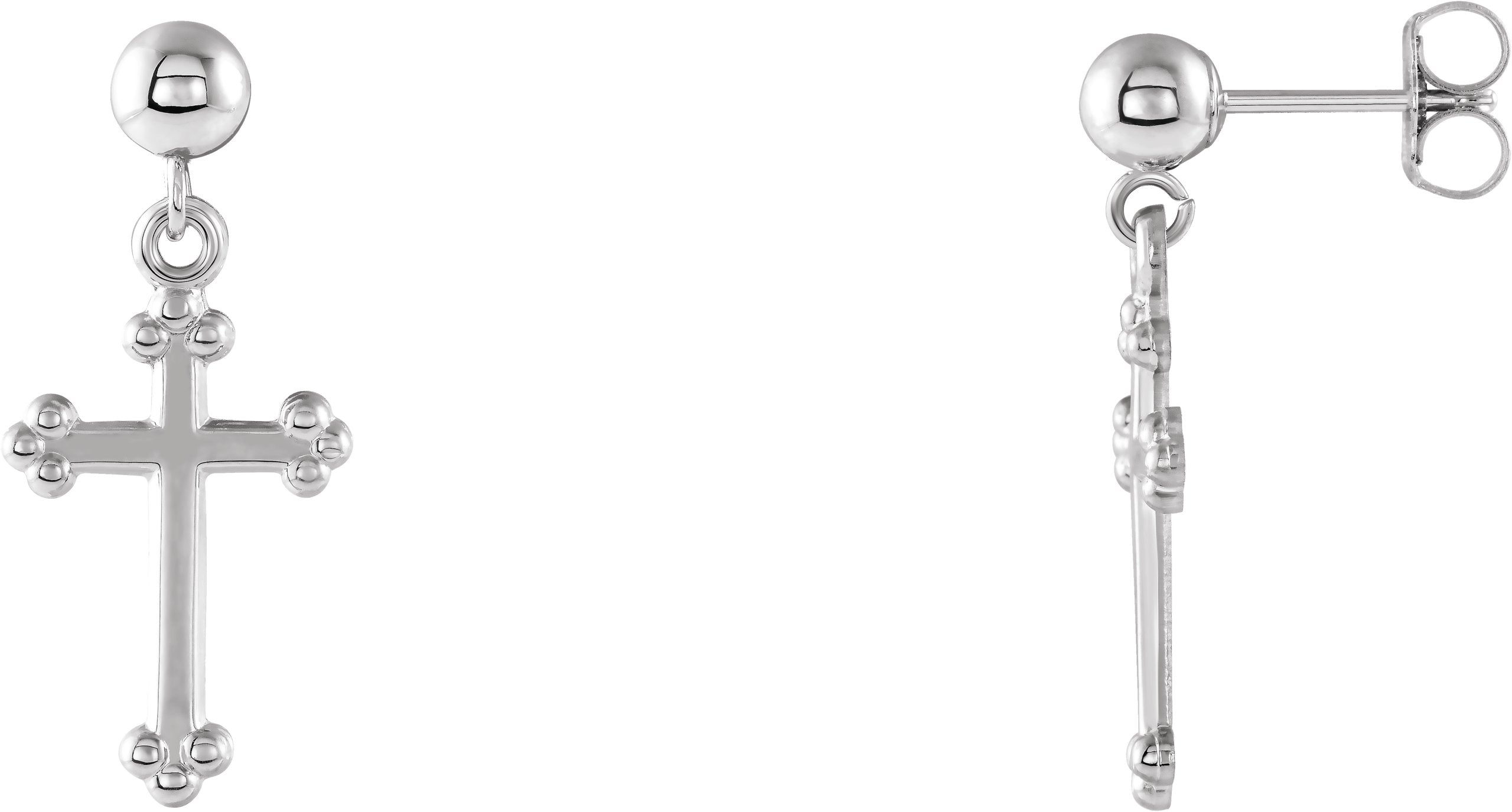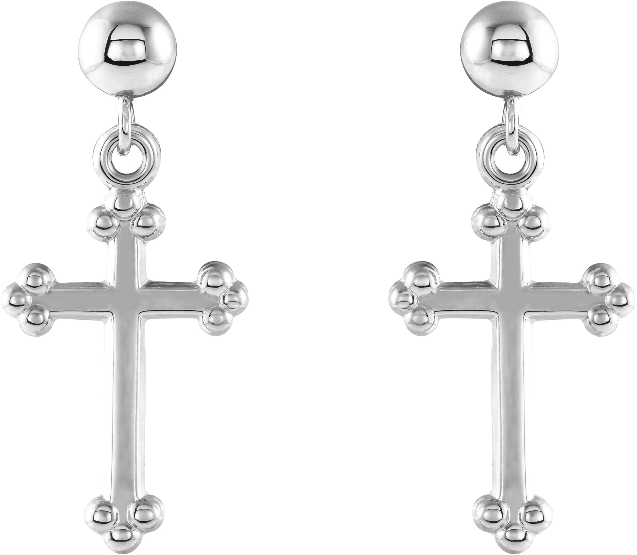 14K White Cross & Ball Earrings