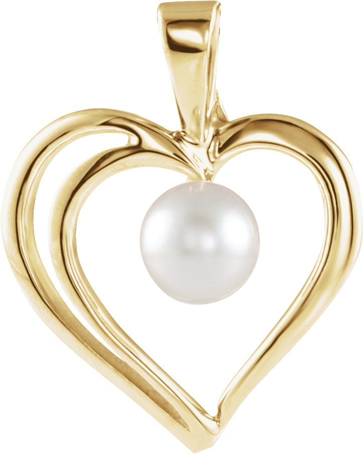 14K Yellow Cultured White Akoya Pearl Heart Pendant