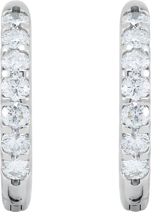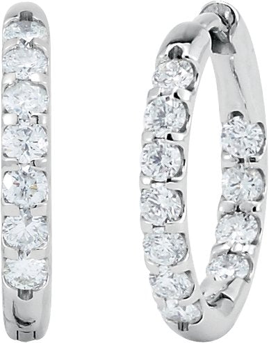 14K White 1 1/8 CTW Natural Diamond Inside-Outside Hinged 18.5 mm Hoop Earrings
