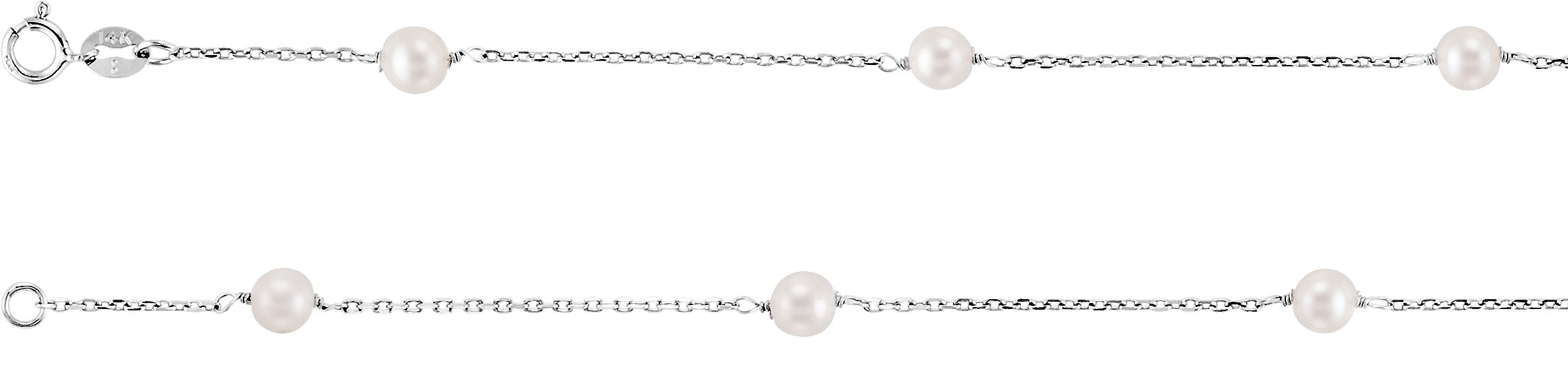 14K White Cultured White Freshwater Pearl 9-Station 18" Necklace