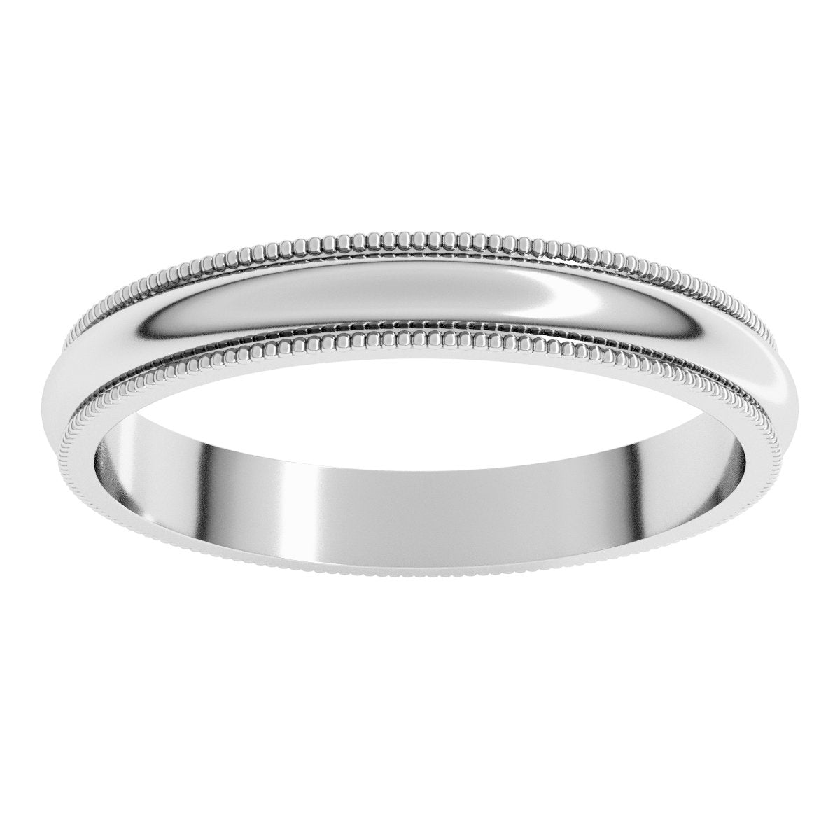 14K White 3 mm Milgrain Half Round Band Size 7.5