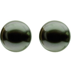 14K Palladium White 10 mm Cultured Gray Tahitian Pearl Earrings