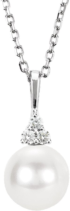 14K White Cultured White Freshwater Pearl & .05 CTW Natural Diamond 18" Necklace