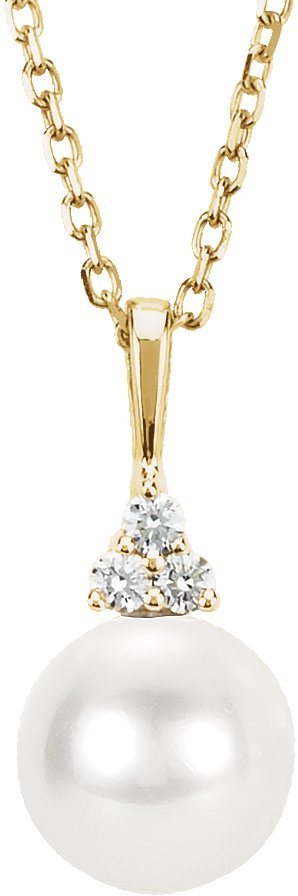 14K Yellow Cultured White Freshwater Pearl & .05 CTW Natural Diamond 18" Necklace